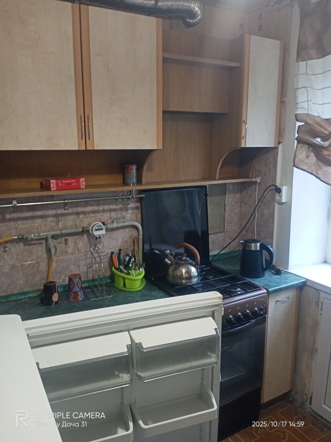 Кухня оборудована необходимой бытовой техникой, включая холодильник, газовую плиту, чайник, микроволновую печь, газовую колонку, что обеспечивает постоянное наличие горячей воды. В каждой комнате установлен вместительный шкаф, а также имеется удобный диван. Ванная комната совмещенная, оснащена всем необходимым, включая стиральную машинку.